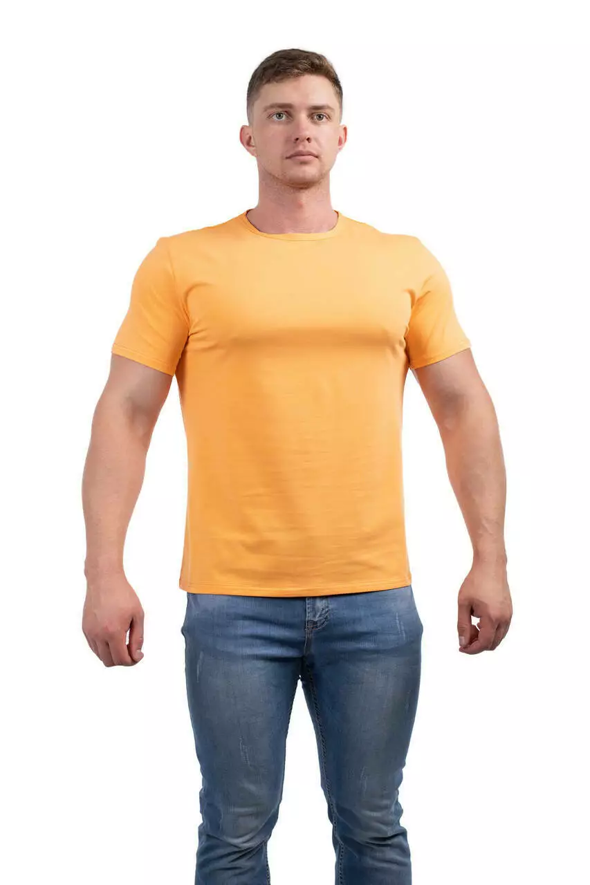 Базова чоловіча футболка — основа для створення стильних рішень. У складі — бавовна високої якості з невеликим вмістом еластану. Тканина м’яка, дихаюча, добре зберігає форму та колір. Прямий крій із круглою горловиною пасуватиме будь-якому типу фігури. Легко поєднується з джинсами або шортами, підходить для нанесення принта.
