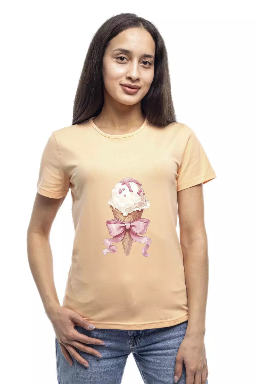 Bono Футболка жіноча прямого крою 950078 бежева принт морозиво