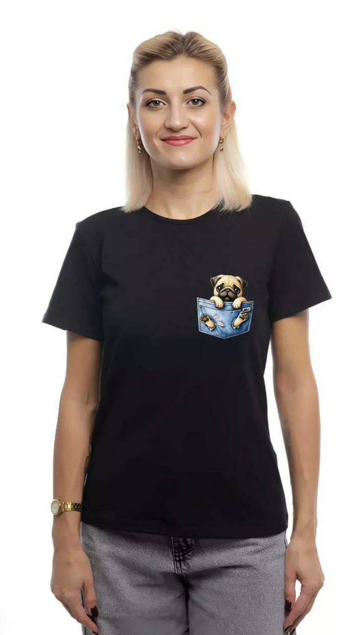 Bono Футболка жіноча прямого крою 950101 колір чорний принт мопс