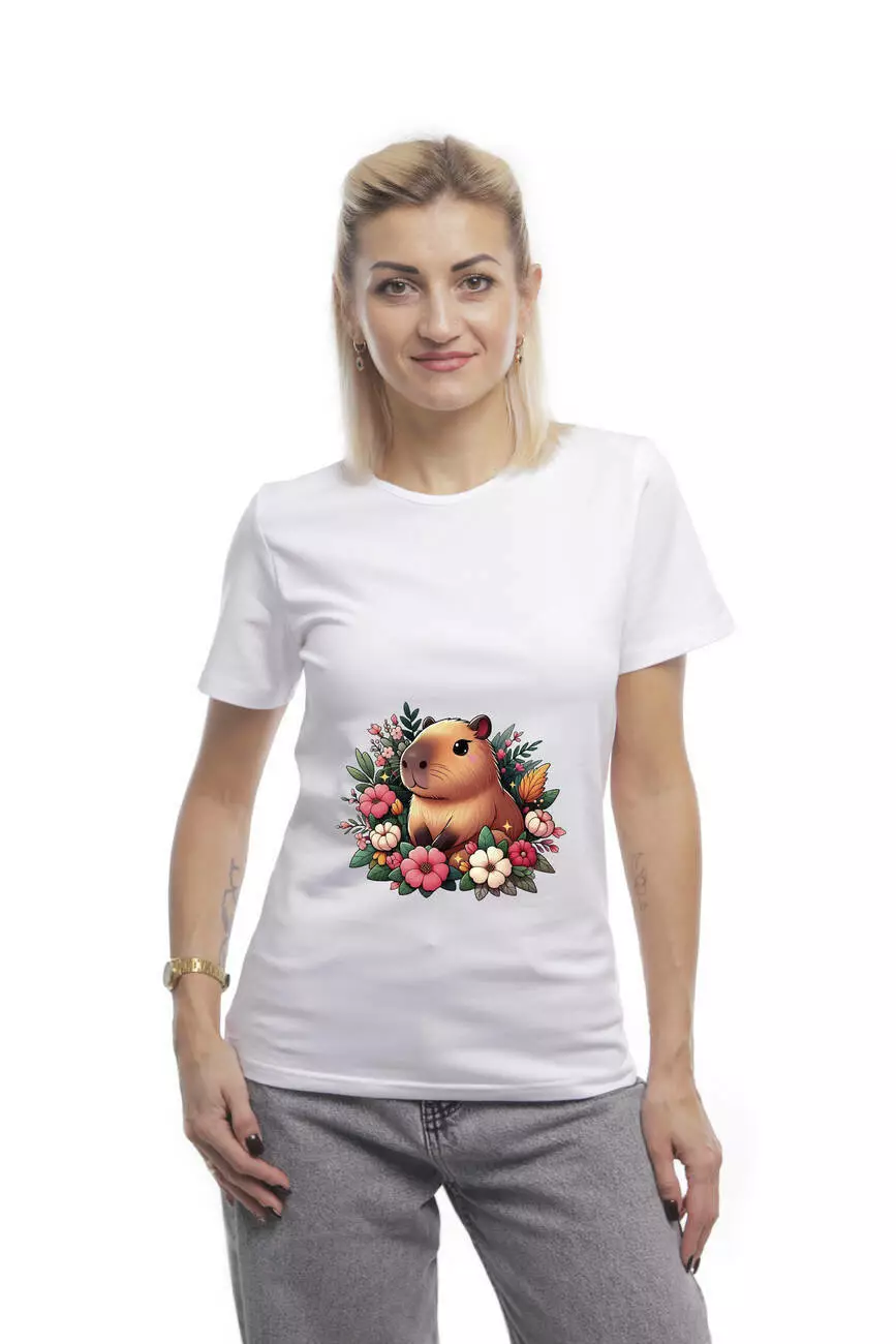 Bono Футболка жіноча прямого крою 950102 біла принт капібара