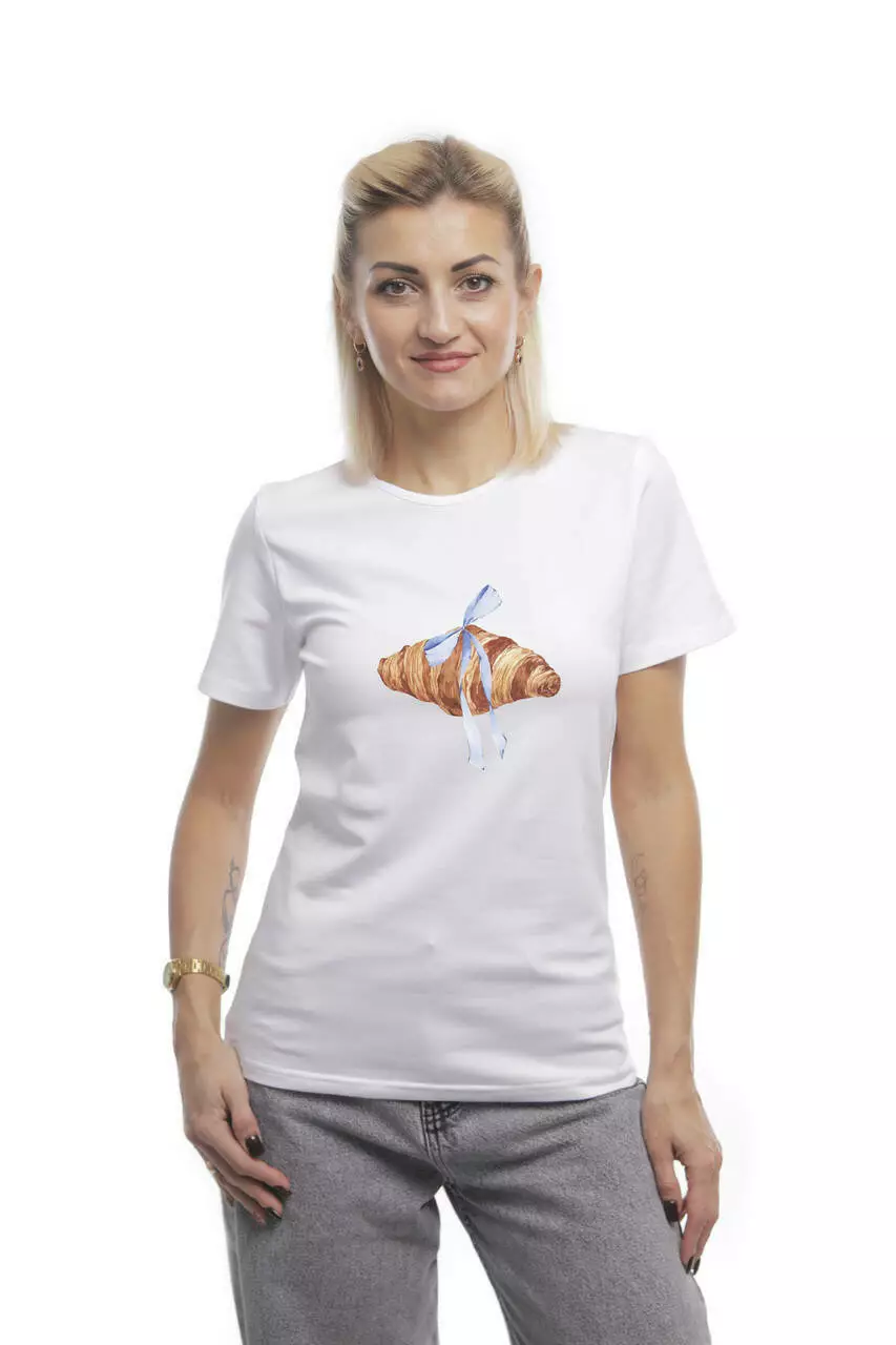 Bono Футболка жіноча прямого крою 950102 колір білий принт круасан