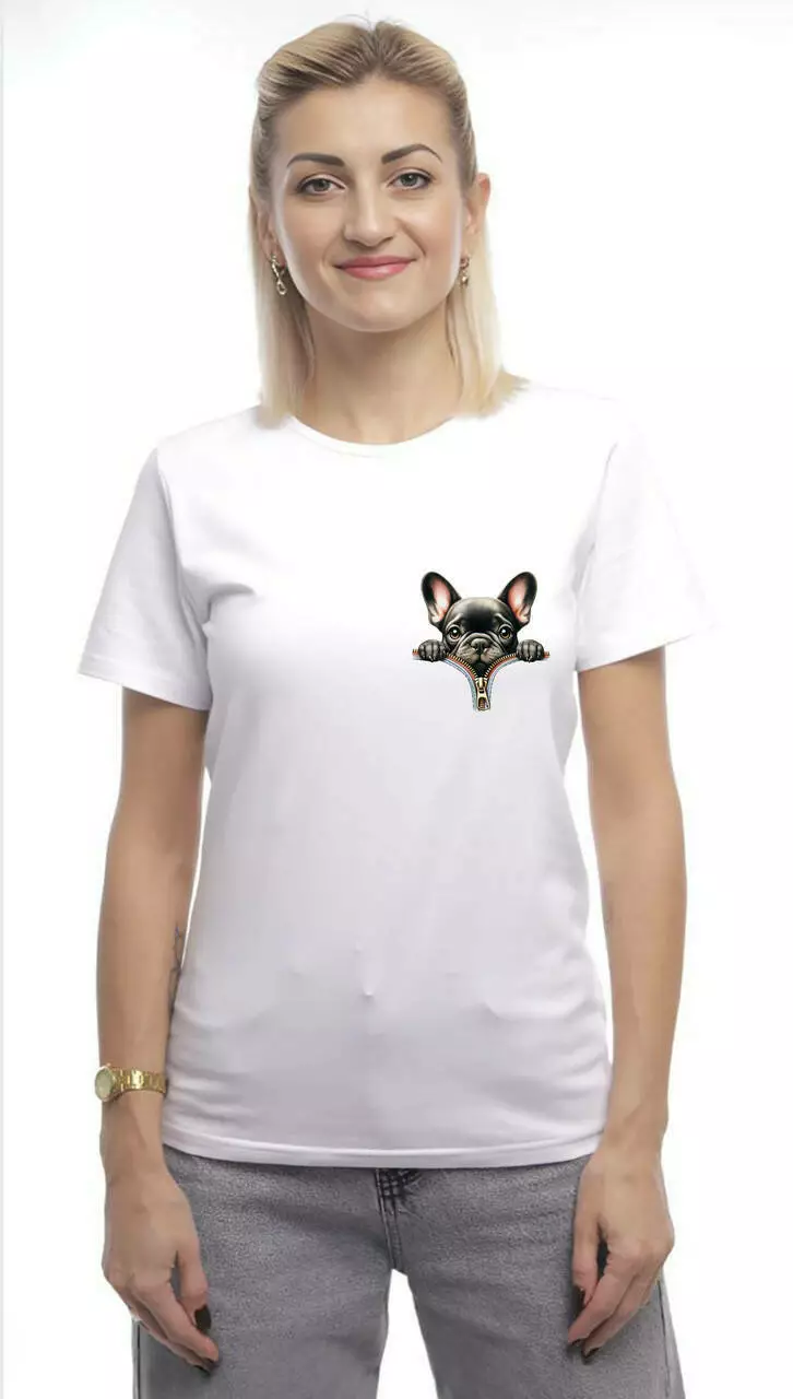 Bono Футболка жіноча прямого крою 950102 колір білий принт собака французик