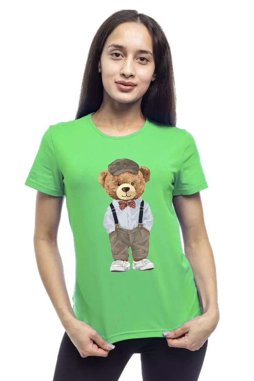 Bono Футболка жіноча прямого крою 950155 зелена принт ведмедик