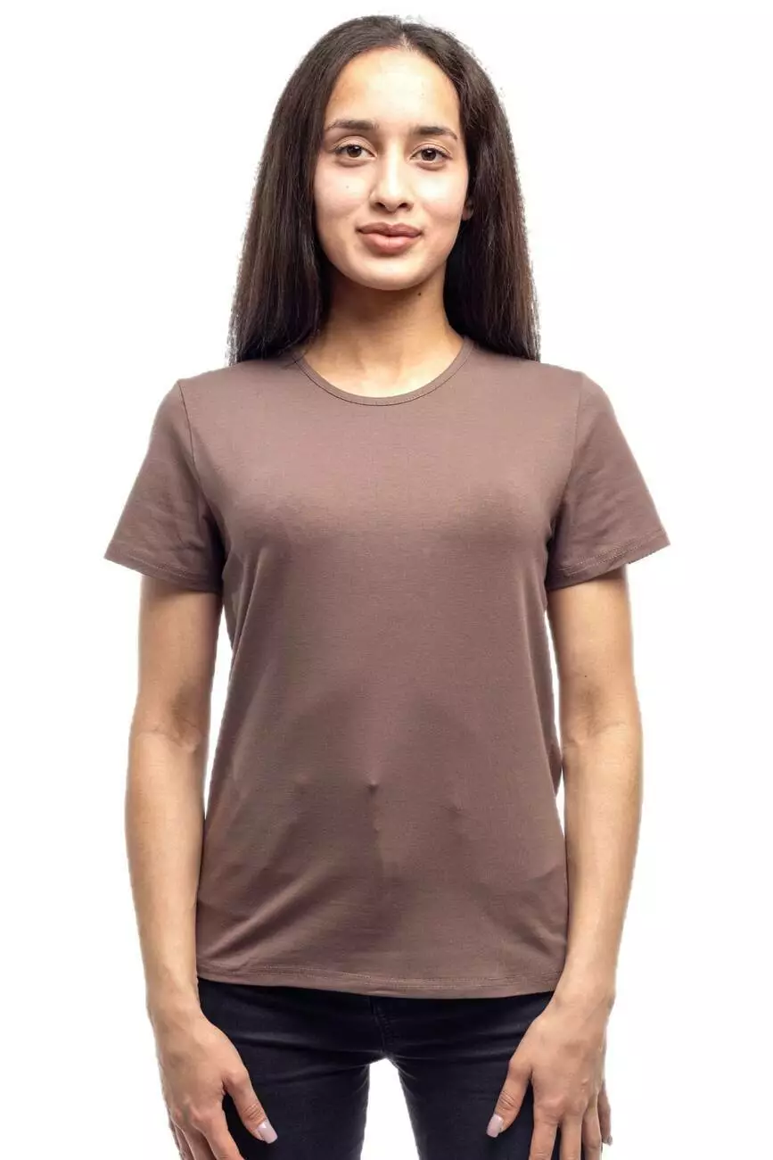 Базова жіноча футболка — просто і зручно на кожен день. Виготовлена з високоякісної бавовни з додаванням еластану. Тканина м’яка, дихаюча, добре зберігає форму та колір. Лаконічний дизайн без зайвих деталей робить футболку універсальною для будь-яких комбінацій – від повсякденних образів до більш витончених луків. Дана модель підходить для нанесення принта.