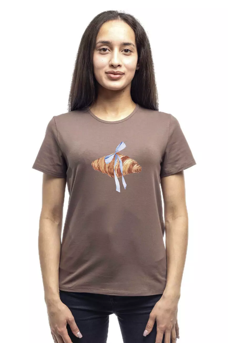 Bono Футболка жіноча прямого крою 950157 коричнева принт круасан