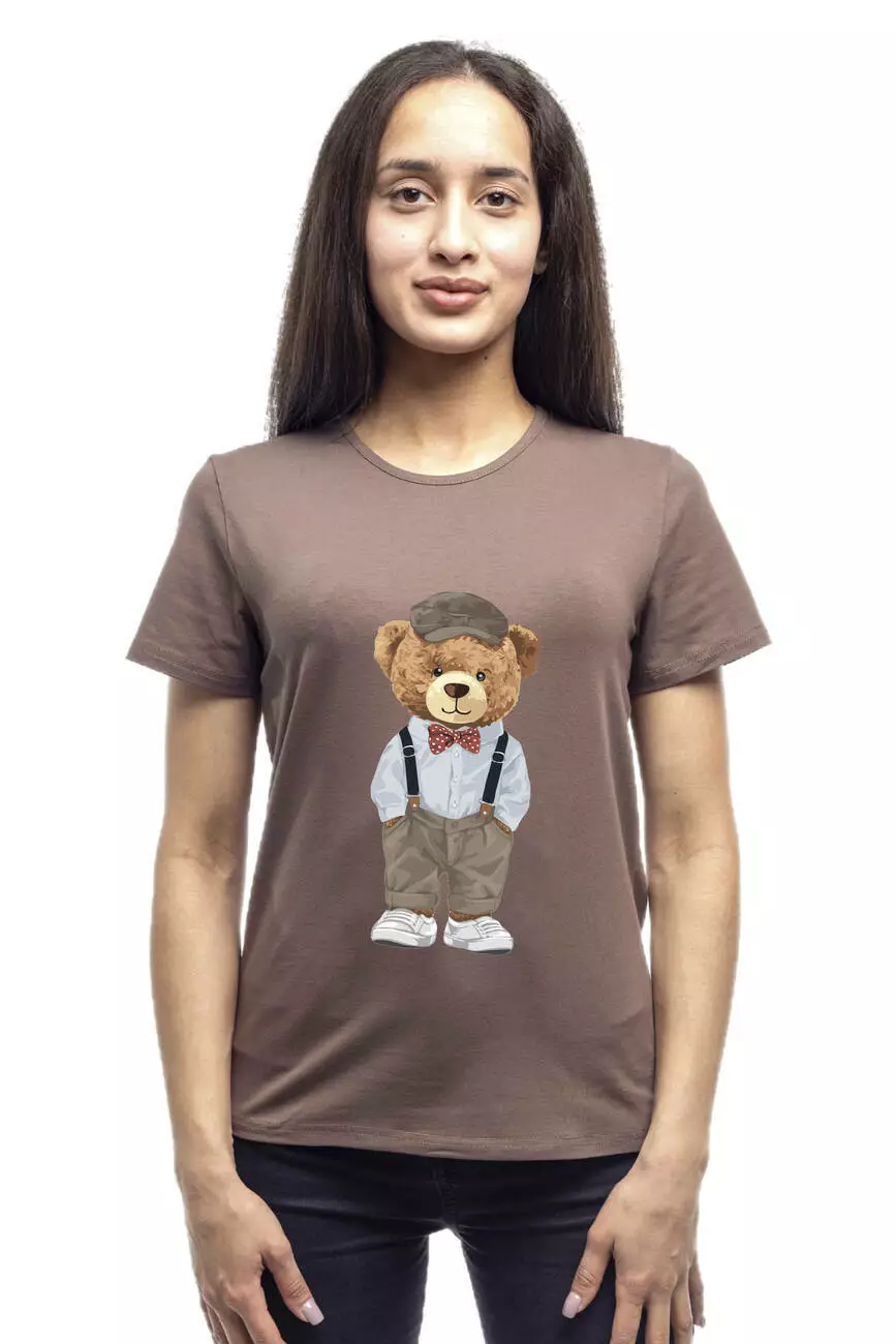 Bono Футболка жіноча прямого крою 950157 коричнева принт ведмедик