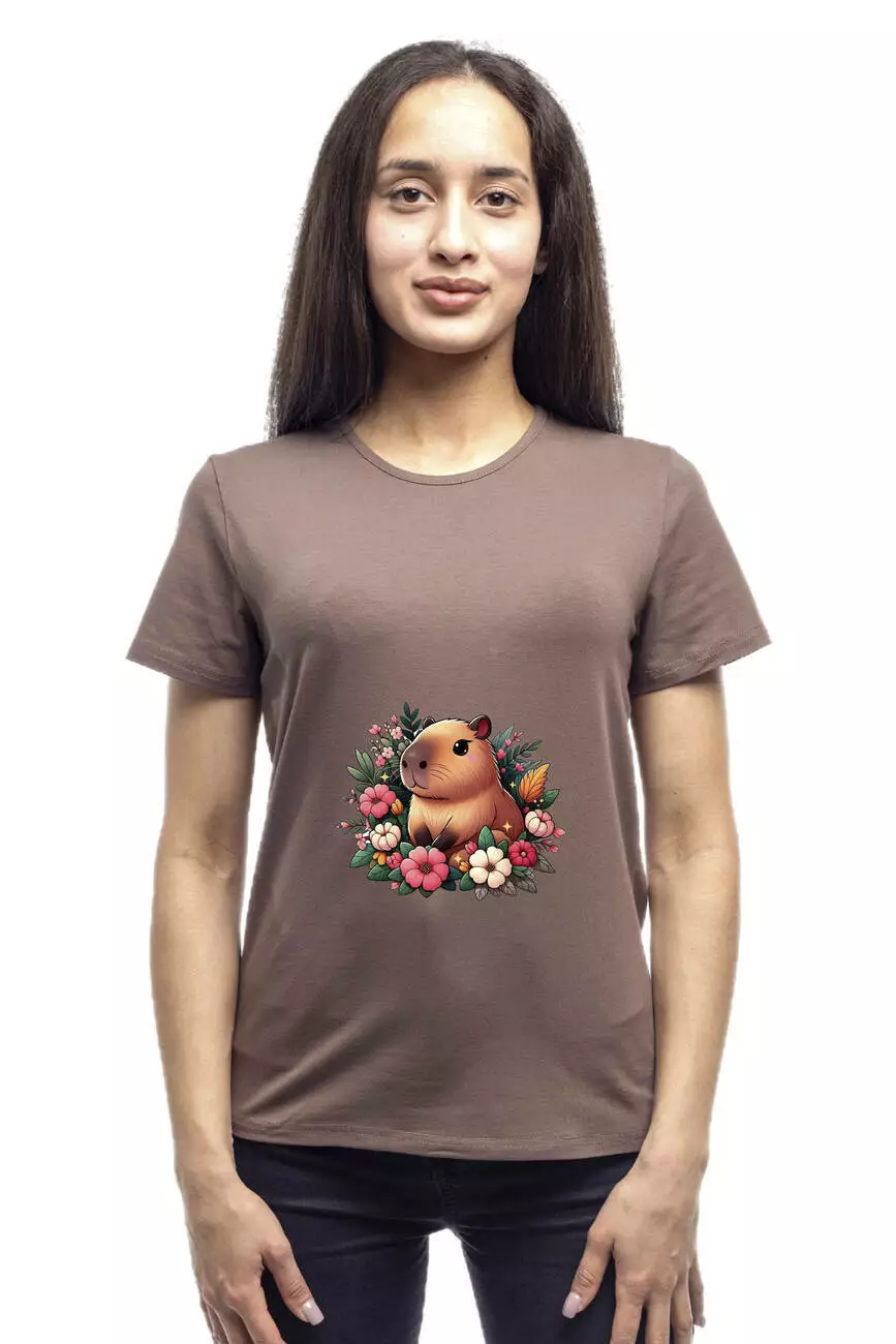 Bono Футболка жіноча прямого крою 950157 коричневий принт капібара