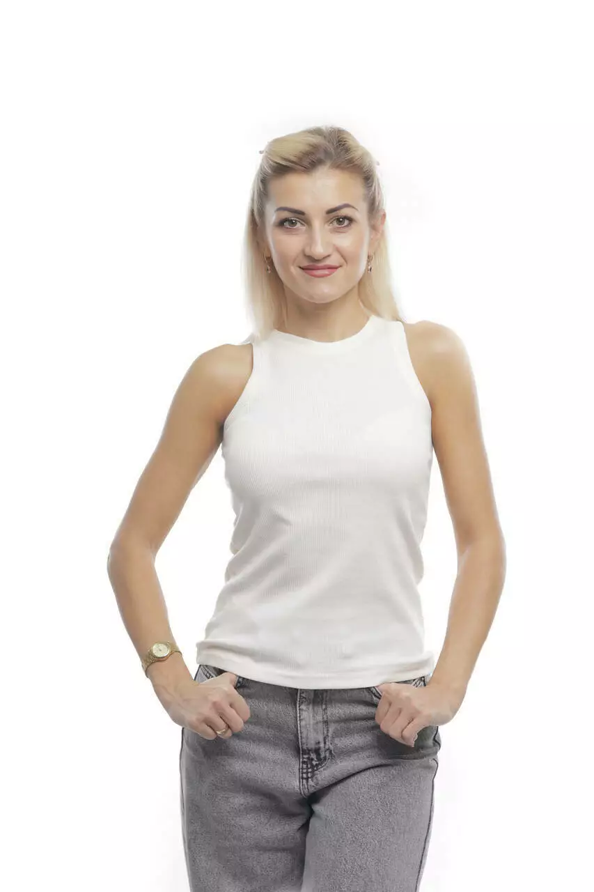 Жіноча майка-борцовка – м’яка, шовковиста та еластична, виконана з бавовни рубчику та 5% еластану. Трикотаж рубчик – приємне на дотик, дуже еластичне, середньої щільності полотно. Добре пропускає повітря, вигідно підкреслює фігуру, даруючи відчуття легкості протягом дня. Базова модель із широкими бретелями та приталеним кроєм стане універсальним елементом вашого гардеробу.