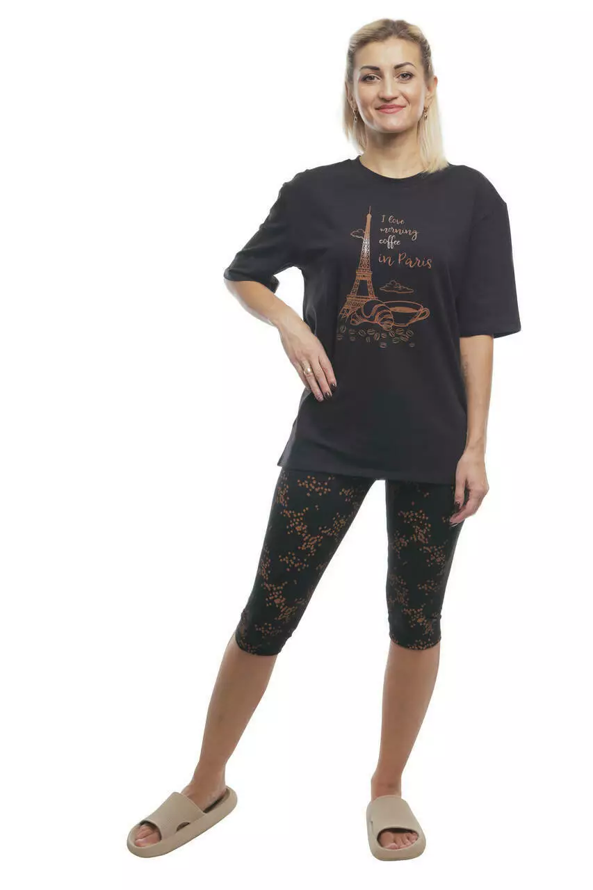 Комплект "Кава в Парижі" – витончений сет, натхненний атмосферою паризьких кав'ярень. У комплект входять футболка вільного крою та лосини-бриджі. Виготовлений з м'якої преміальної бавовни з додаванням 5% еластану.