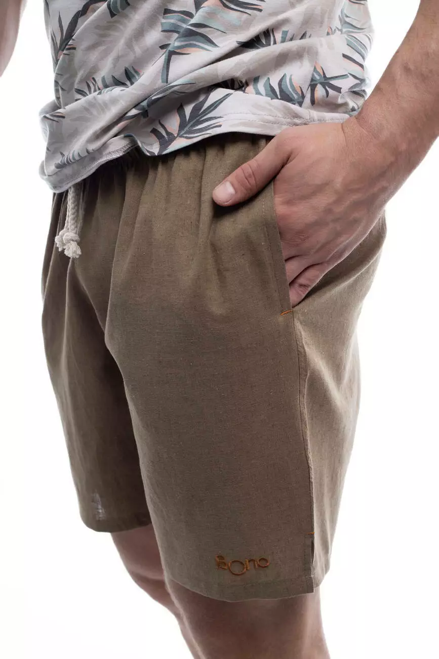 Чоловічі шорти для спекотного літа: легкі, дихаючі, практичні. Виготовлені з натурального льону та віскози. Льон сприяє хорошій вентиляції, а віскоза додає виробу м'якості та шовковистості. Наявність кишень та регульованого поясу робить виріб ще зручнішим у повсякденному використанні.