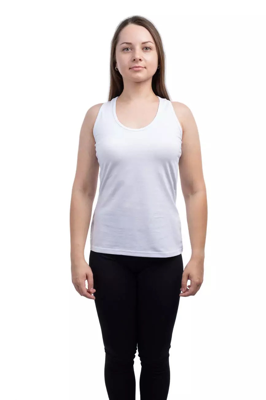 Жіноча майка-борцовка – м'яка, дихаюча та еластична, виконана з бавовни та 5% еластану. Натуральна тканина чудово вбирає вологу, довго залишаючись сухою та забезпечуючи комфорт протягом дня. Базова модель на широких бретелях з U-подібним вирізом та вільним кроєм створює ідеальний баланс між комфортом та сучасним стилем.